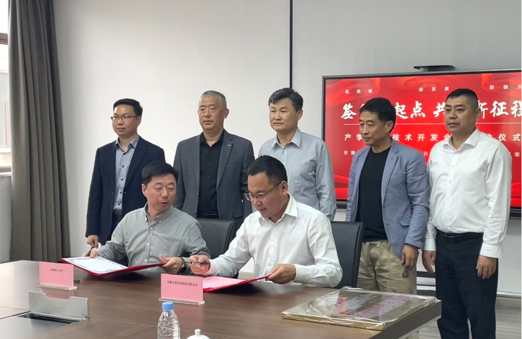 随后,双方围绕技术研发、项目合作、人才培养等议题展开深入交流,并达成多项合作意向。双方签订产学研合作协议和技术开发(合作)合同,并共同为“安徽理工大学产学研合作基地”揭牌,标志着校企合作迈入新阶段。