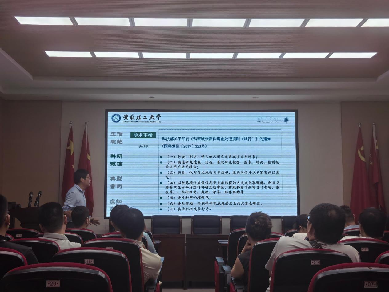 为使全院师生熟知当前国家对学术不端行为的规定,学院副院长邓晋为全院教师作了科研诚信教育专题讲座,从“工作规范”、“科研诚信”、“典型案例”和“应知应会”四个方面向大家介绍了当前国家对学术不端行为的各项措施,以此警示大家坚守住学术底线。