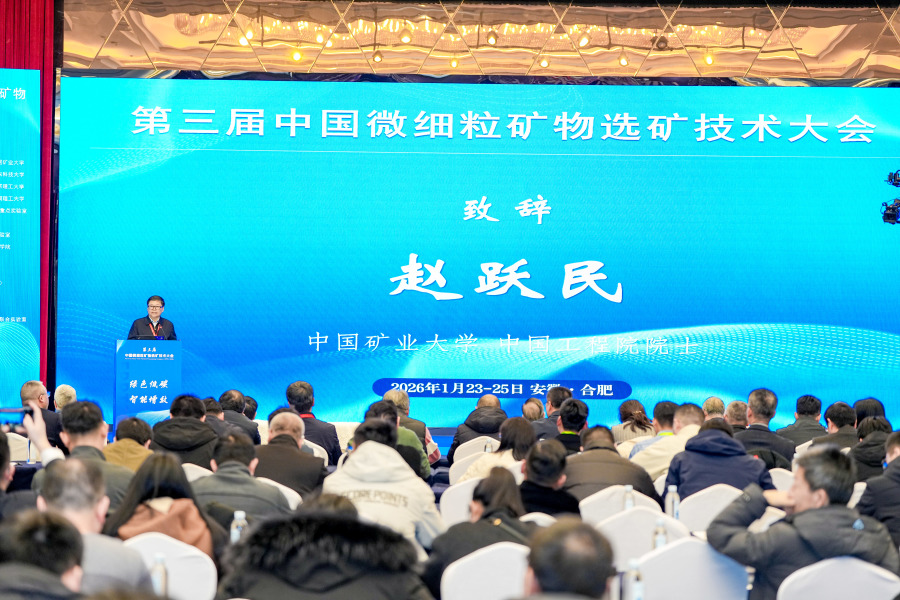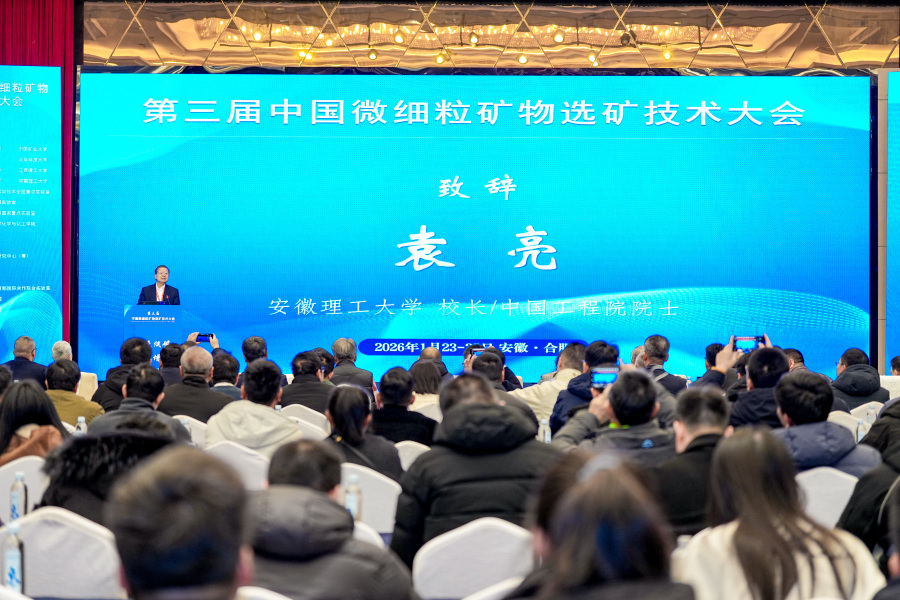 1月23-25日,由安徽理工大学主办的第三届中国微细粒矿物选矿技术大会(The 3rd China Fine Particle Processing Congress,FPPC 2026)在合肥成功召开。大会以“绿色低碳、智能增效”为主题,吸引了全国400余名专家学者、企业代表及科研人员的参与,聚焦微细粒矿物选矿领域关键技术突破与产业应用,为保障国家能源资源安全、推动矿业绿色转型提供智力支撑。中国工程院院士、校党委副书记、校长袁亮出席并致辞。中国工程院院士姜涛教授、中国工程院院士赵跃民教授受邀参会。大会开幕式由安徽工业大学副校长闵凡飞教授主持。