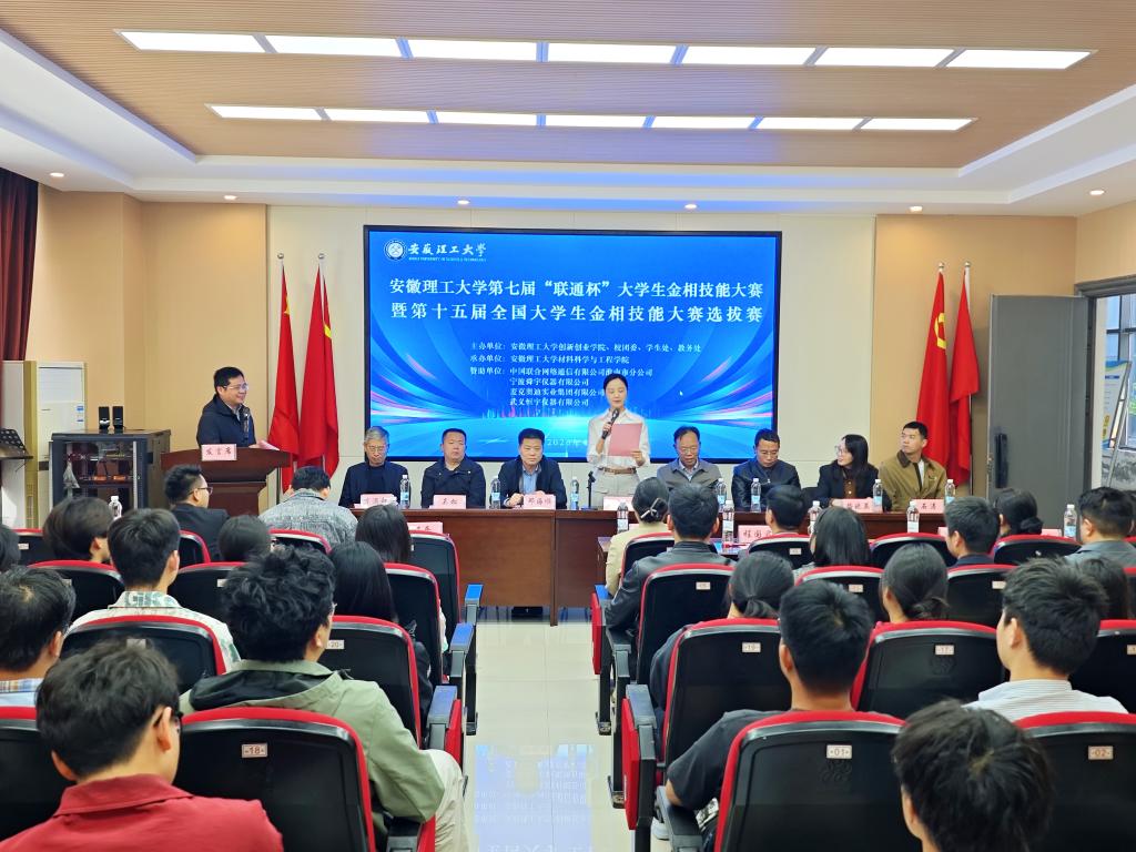 4月25日,安徽理工大学第七届“联通杯”大学生金相技能大赛暨第十五届全国大学生金相技能大赛选拔赛开幕式在崇义楼B118顺利举办。创新创业学院院长杨洪涛、校团委书记丁玲玲、学生处处长涂有胜、教务处副处长邓海顺、中国联合网络通信有限公司淮南市分公司副总经理路晓英、麦克奥迪实业集团有限公司苏皖销售经理石涛、宁波舜宇仪器有限公司高级工程师吴松、材料学院部分领导、大赛评委和参赛选手出席开幕式,开幕式由材料学院副院长邓晋主持。