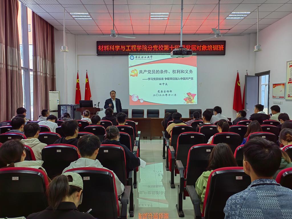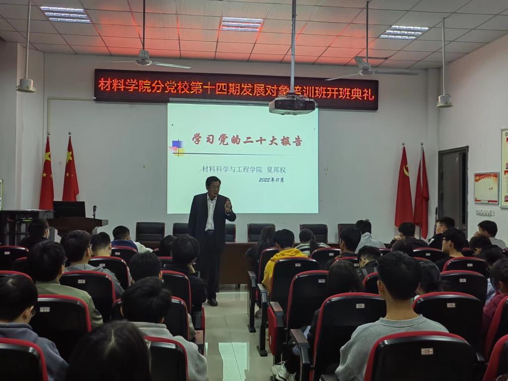 为进一步做好发展对象教育培训,不断提高发展党员工作质量,材料学院于11月4日在崇义楼B118会议室举办了第十四期发展对象培训班开班典礼。