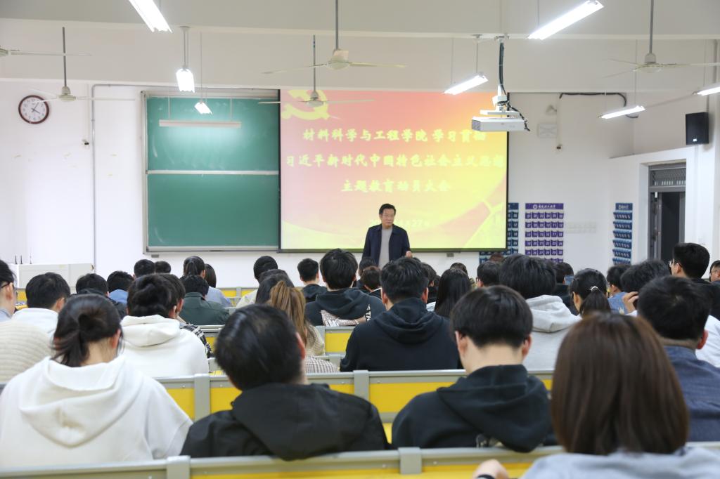 4月27日下午,材料科学与工程学院在明理北314教室召开学习贯彻习近平新时代中国特色社会主义思想主题教育动员大会暨党委理论中心组(扩大)学习会。会议由院党委书记夏邦权主持,全体党员参加。