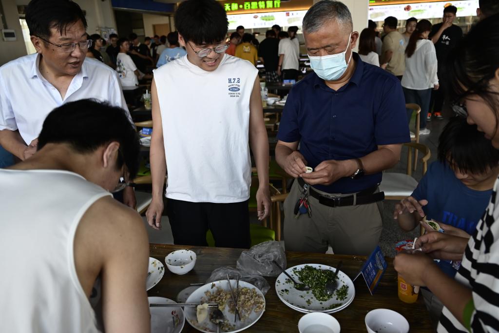师生一起包饺子