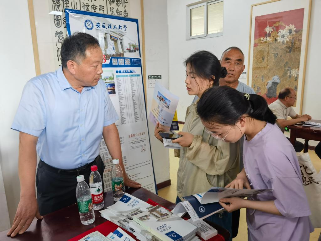 宣讲会上,宫能平对支持我校招生工作,为我校输送了大量优质生源的学校表示感谢。他介绍了学校发展历史、办学特色、学科建设、人才培养和就业创业等方面取得的成就,结合招生政策,详细介绍了2023年高考预估录取分数段和全省排名位次。宣讲会后,宫能平前往招生咨询现场,面对面的解答学生和家长关于预估分数、专项和统招、专业方向、转专业和奖助政策等方面的具体问题,并邀请更多优秀的学生报考安徽理工大学,共创美好未来。