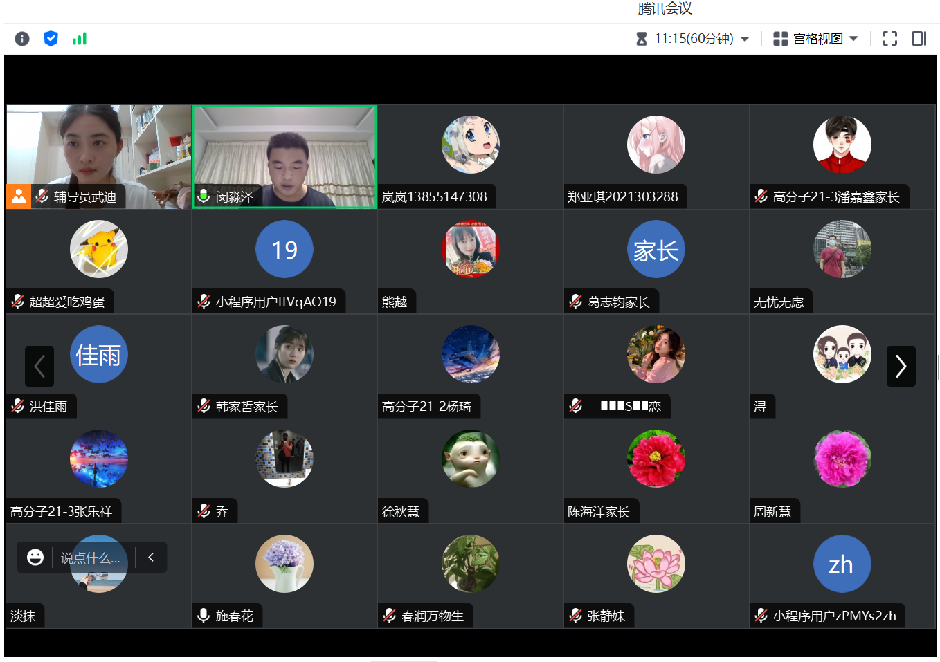 7月底至8月初,学院辅导员采用腾讯会议的方式分年级分专业召开本科生线上家长会,会上对毕业班学生与家长进行就业和征兵政策宣讲,提醒学生要就业考研两手抓,免除“后顾之忧”;告知低年级学生家长学生在校的生活、学习情况,针对一学期中存在的问题进行了分析。会上还对暑期生活提出了合理建议,并请优秀学生代表进行发言,进一步延伸家访内容。