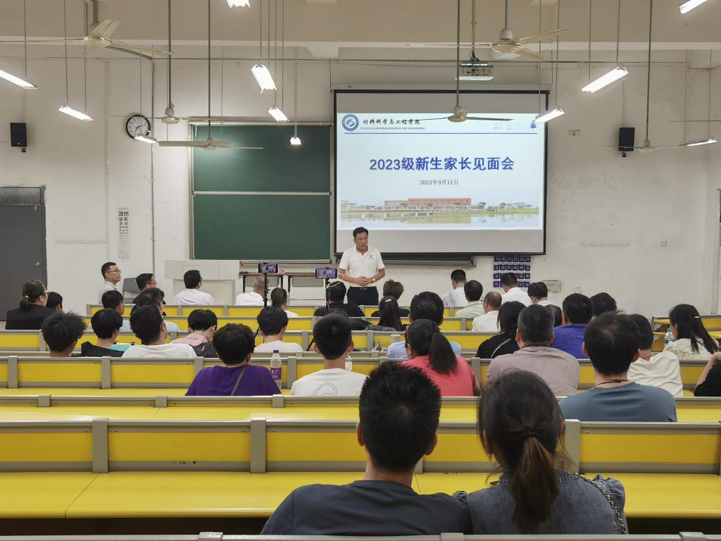 为了进一步加强家长对学校和学院的了解,提升家校共育合力。9月11日晚上,材料科学与工程学院以线上线下结合的方式召开2023级本科新生家长见面会,学院领导班子成员、各系主任和新生辅导员参会,线下参会家长100余人,同步直播在线人数近200人,会议由学院党委副书记陈向君主持。