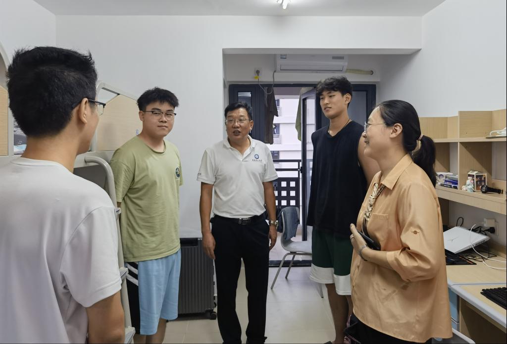 9月12日,学院领导及新生辅导员前往新生宿舍进行走访慰问,亲切询问新生开学的适应情况。同学们畅所欲言,并表达了对于接下来大学生活的期待。学院党委书记夏邦权在宿舍走访中表示,希望同学们脚踏实地,勤奋学习,做有理想、敢担当、能吃苦、肯奋斗的新时代好青年;党委副书记陈向君询问新生们在生活上是否有困难,现场回答学生关切的问题。走访过程中,亲切的话语,真诚的关爱,让学生宿舍中传递出阵阵舒心的笑声。