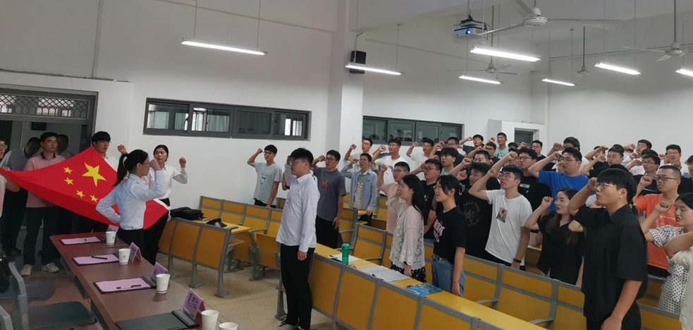 2022级优秀学生代表孔垂雷分享了自己在学习上的经验和体会,鼓励新生要敢问敢想,学会查阅文献等技能,提高自己的综合能力和科学素养。新生代表胡尚玉同学发言并表态,以后要在学院老师的教导下以饱满的热情,积极投入到学习和科研中去。最后,全体2023级研究生面向国旗进行了庄严的宣誓。