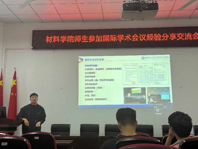 报告会上,四位博士分享了自己在参加国际会议和留学准备方面的经验和心得。王陆军博士分享了关于国际会议与留学材料准备的内容。他结合自身的经历,从参加国际会议的感受、国际会议材料准备、出国留学资助政策、申请流程以及材料准备等方面进行了详细汇报,为有志于出国参加学术会议和留学的同学提供了有益的指导和建议。