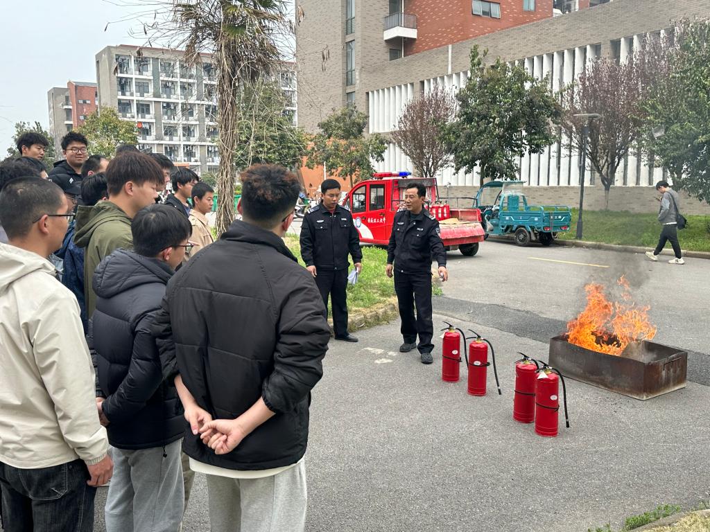 消防疏散演练结束后,全体人员移至义苑3号楼A单元南侧空地,进行了模拟灭火演练。彭广峰详细讲解了常见灭火器的分类,储压式干粉灭火器的使用方法,注意事项,以及操作要点,并进行了灭火演示。随后,在彭广峰的指导下,学生们依次体验了灭火器的操作使用方法,现场进行了灭火演练。学生们纷纷表示,通过灭火实操演练,不仅能直观地学习消防安全知识,同时还提升了个人的消防安全技能。
