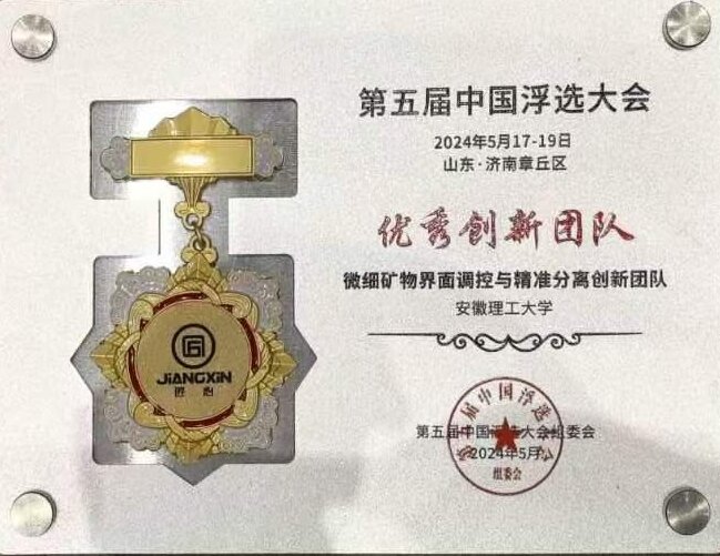 与会学者围绕“浮选工艺与装备”“绿色药剂与化学选矿”等议题展开深入讨论。在“浮选理论与界面化学”“微细颗粒高效分选”等专题会场,我校材料学院闵凡飞教授,朱宏政副教授,周伟副教授分别作了报告,介绍了我校矿物加工专业领域的最新研究成果。同时,我校微细矿物界面调控与精准分离创新团队荣获第五届中国浮选大会优秀创新团队奖。