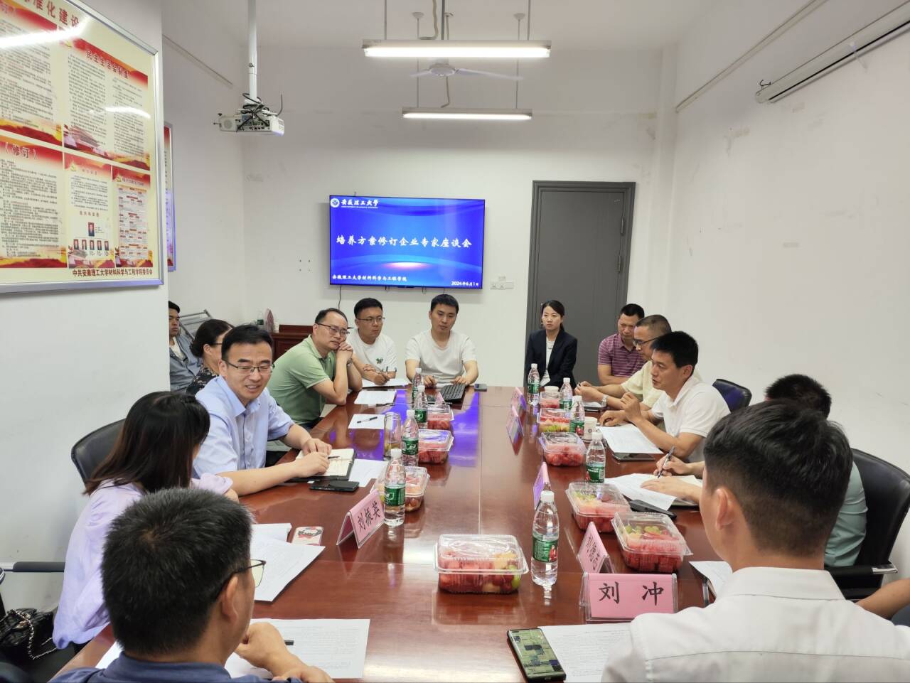 王庆平首先对各位企业专家的到来表示热烈欢迎,然后就专业概况、发展历程、师资队伍和人才培养等方面介绍了无机非金属材料工程专业近年来的发展,对一直以来支持专业发展建设的各企业领导专家表示衷心的感谢,随后结合学校人才培养方案修订的要求,希望企业专家能够结合行业发展和企业人才需求,对2024版培养目标提出修改建议。与会专家主要针对以下四个方面进行了提议。一是要注重奉献意识、社会责任感、拼搏奋斗、坚持不懈等人文素养和健全人格的培养,传承老一辈“不用扬鞭自奋蹄”和自强不息的精神;二是要注重基础专业知识的培养,未来行业的需求是多元化的,扎实牢固的基础专业知识是适应企业发展的重要法宝;三是要充分结合国家、地区的发展战略,如“十四五”规划、安徽省十大战略新兴产业以及地区的揭榜挂帅项目,将传统无机非金属材料与新材料紧密联系,聚焦特色方向,保证专业人才培养紧跟社会发展;四是要注重培养材料研发的系统观和全局观,全流程考虑材料生产过程中的能源、资源和环境影响,同时要做好市场调研,不能闭门造车。随后,与会专家与教师就如何落实培养目标建议进行了具体深入地讨论交流。
