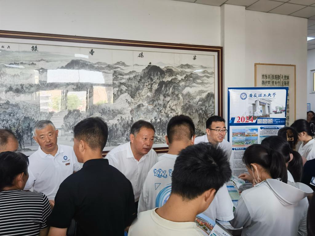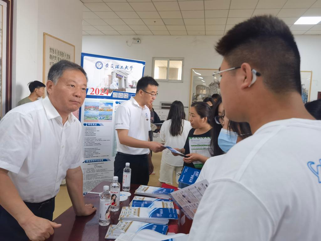在安徽省砀山中学,宫能平在安徽理工大学招生咨询点与考生和考生家长们进行了面对面的咨询和交流。针对家长关心的招生政策、热点分析、成绩位次、专项和统招、学院和专业设置、就业方向、转专业和奖助政策等问题,进行了耐心解答,热情邀请广大考生来校参观,鼓励考生们结合兴趣特长、学业规划、职业发展、国家需求等因素,采取“冲、稳、保”的方法理性选择专业,期待更多学生圆梦安理,携手共创一流。