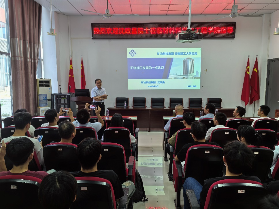 8月8日下午,矿冶科技集团有限公司首席科学家沈政昌院士应邀为材料科学与工程学院师生作报告,报告会由材料科学与工程学院院长闵凡飞主持。