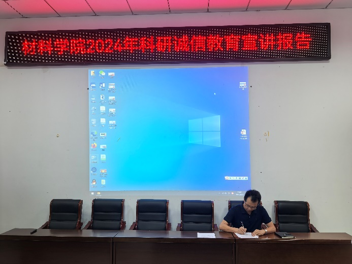 材料学院通过开展科研诚信教育主题系列活动,要求每位教师以案为镜,吸取教训,恪守学术诚信,牢固树立底线思维,将诚信融入到日常科研活动中去。