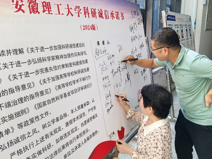 为使全院教师认识到学术诚信的重要性,学院开展了科研诚信承诺书签字仪式,以学院8个科研团队负责人为代表庄严签下个人“诺言”。