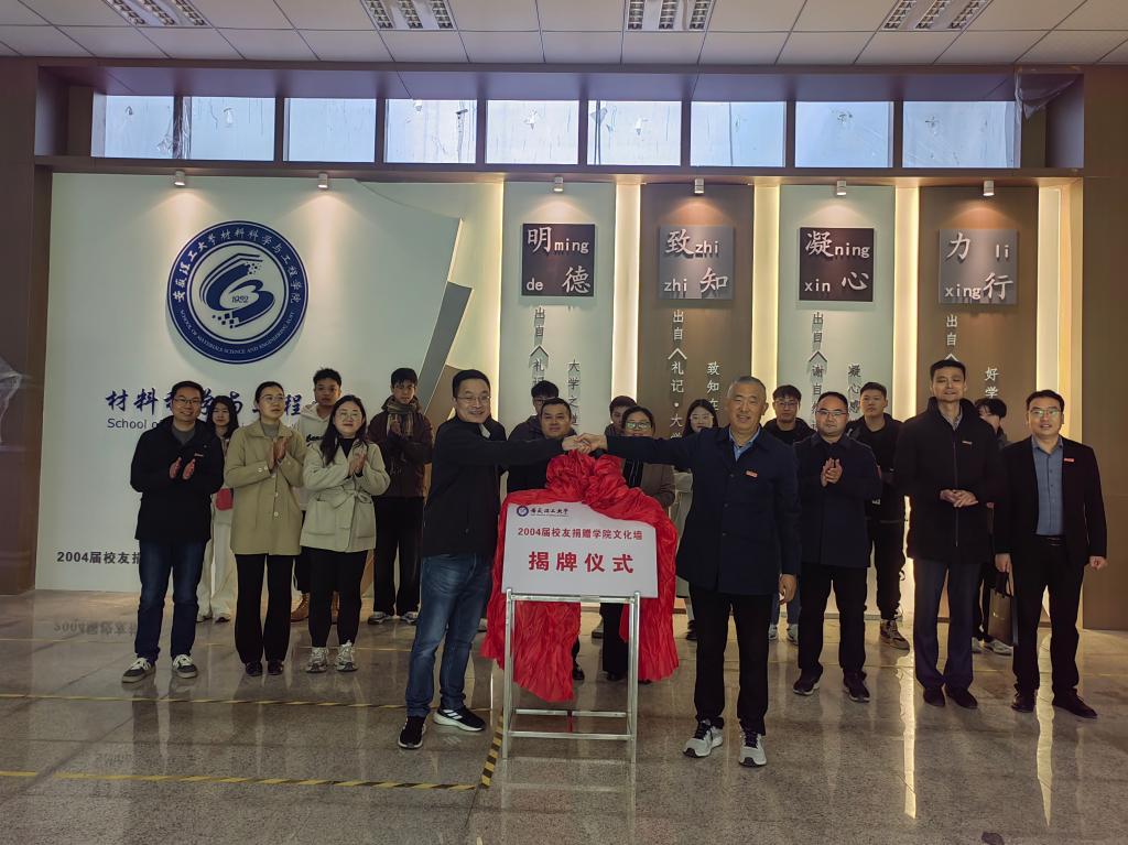 树高千尺不忘根,水流万里总思源。11月21日上午,2004届校友捐赠学院文化墙揭牌仪式在崇义楼一楼大厅举行。校友代表、校合作发展处处长刘艳、材料科学与工程学院领导班子成员、部分教师代表和学生代表参加揭牌仪式。