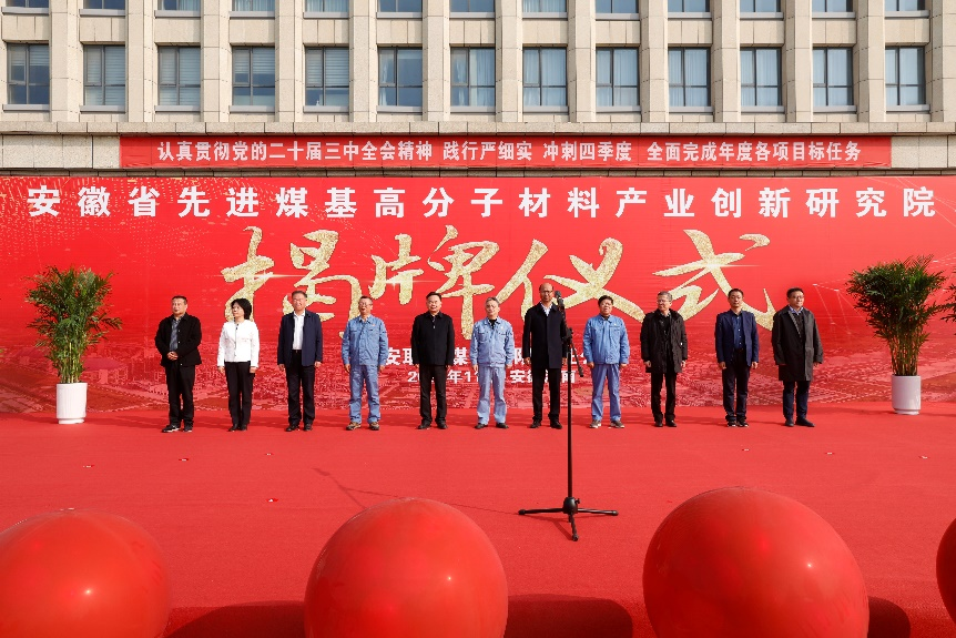 11月22日上午,在中安联合煤化有限责任公司主楼广场举办了“安徽省先进煤基高分子材料产业创新研究院”揭牌仪式,副校长宫能平代表共建单位安徽理工大学参加揭牌仪式。