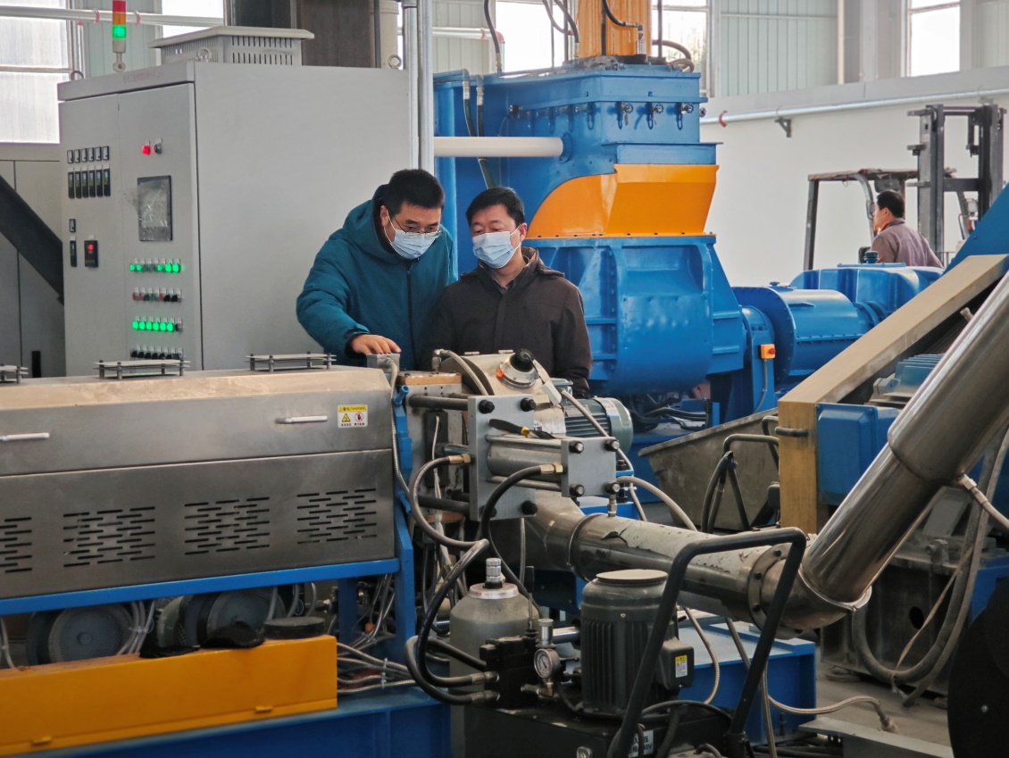 走访首站是江苏智途高分子材料科技有限公司,该企业创始人陈大伟是高分子专业2006级校友,也是高分子校友基金的发起人。企业矢志于高分子材料的研究与应用,重点从事高分子材料合成、回收利用的高端装备制造及先进解决方案,并构建了新型高分子材料孵化中试基地,业务范围包括:原生(再生)聚酯、聚碳酸酯、聚芳酯、尼龙、生物基可降解新材料的聚合装置、固相缩聚装置、回收利用装置,公司年销售额达7000余万元。此次走访,陈大伟热情接待了程国君一行,并详细介绍了企业发展历程、业务范围及未来规划。在交流中,程国君介绍了学院的学科建设、人才培养等情况,双方围绕科研合作、建立实习就业基地等具体细节展开深入探讨,并达成合作意向。