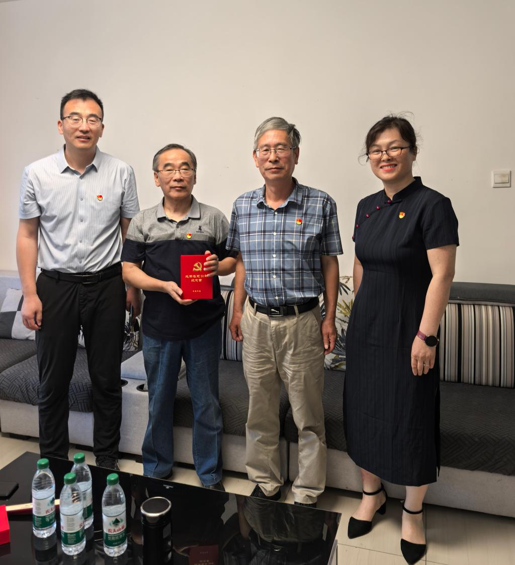 6月23日上午,材料科学与工程学院党委书记陈满乾、副院长(主持工作)王庆平一行四人,以走访慰问形式为学院老党员叶良彪同志颁发“光荣在党50年”纪念章。