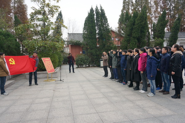 为深入贯彻党的十九大精神,推进“两学一做”学习教育扎实深入开展,进一步加强学院党员教育工作,11月17日上午,材料科学与工程学院教工第一党支部、教工第二党支部和三个学生党支部教师党员代表共计37人,赴寿县小甸镇安徽省第一面党旗纪念园开展了党支部主题党日活动。