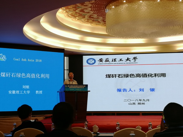 本次大会以“新形势下煤基固废的环保处置和高效利用”为主题,聚焦煤基固废综合利用新技术、跟踪煤基固废产业发展新方向、探讨煤基固废综合利用新问题,推动煤基固废全产业链紧密合作,针对煤基固废产业的热点和痛点,通过加强技术交流合作、科技成果转移转化以及跨区域流通贸易等,大力推动煤基固废处理与利用产业的发展。会上,刘银教授作了题为《煤矸石绿色高值化利用》的报告,详细阐述了煤矸石资源化利用的发展趋势以及行业前景,并介绍了当前研究团队在煤矸石资源化利用方面所取得的研究成果,并同与会代表进行了深入地交流。2017级研究生谭鹏程作了题为《粉煤灰基功能材料的制备与应用》报告,介绍了粉煤灰功能化应用的研究进展。