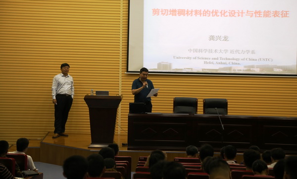 应自然科学处和材料科学与工程学院邀请,9月29日下午,国家杰出青年科学基金获得者,中国科学技术大学龚兴龙教授,在采动国家重实验室一楼厅作了题为《剪切增稠材料的优化设计与性能表征》的学术报告。报告会由科研处处长徐颖教授教授主持,材料学院副院长刘银教授、土建学院副院长荣传新教授、力物学院等相关专业老师、学生等200多人参加了报告会。