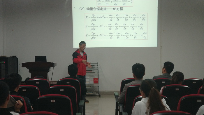 报告会上,韩占忠教授以《现代流体流动仿真计算方法》为题目,介绍了流体流动的基本规律及本构方程,并且在流体力学中最困难的计算流体力学领域做了详细的教学讲解,韩教授通过计算流体力学软件Gambit和Fluent让师生们对计算流体力学有了新的认识。在报告中,韩教授不但从理论上介绍了CFD,还现场操作CFD解决了实际工程问题,让我们对软件中建模、网格划分、边界条件的设定及在Fluent中的具体计算等有了更加深刻的认识。在韩教授演讲过程中,其通俗易懂的教学方式、平易近人的教学态度给师生们留下了深刻的印象。会后,韩教授同部分相关研究方向的师生进行了更加深入的交流和探讨。