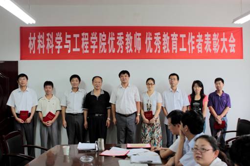 此前,经过毕业班学生推荐、学院教职工大会评选,并经学院党政联席会议研究,评选出范肖南等7位教师为2009-2010年度材料科学与工程学院优秀教师,刘令云等3位同志为2009-2010年度材料科学与工程学院优秀教育工作者。