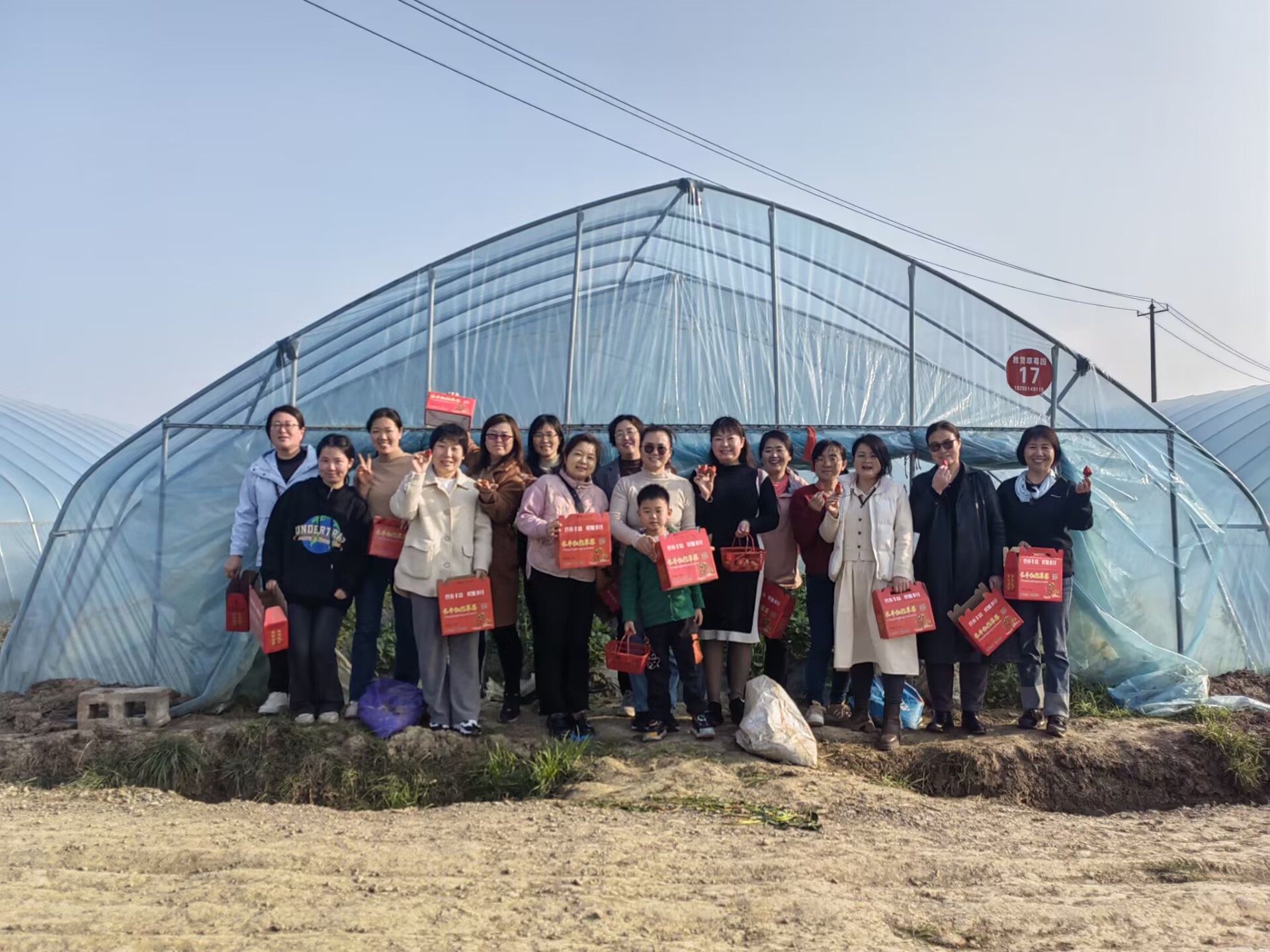 采摘基地的草莓硕果累累、鲜艳欲滴。女教工们积极参与到采摘活动中,大家一边采摘品尝,一边互相交流,体验着亲近自然、亲手采摘的乐趣。一个多小时的田间体验,每位女教工都收获满满,脸上洋溢着开心的笑容。