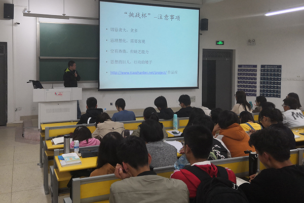 创新点燃梦想,挑战改变人生。10月15日晚,材料科学与工程学院在明理楼202教室举行第八届“挑战杯”大学生课外学术科技作品竞赛培训会。资源循环与工程专业副教授万祥龙应邀主讲,200余名同学参加了此次会议。