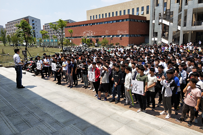 5月10日下午13:00,第一声警报响起,学生在宿舍迅速采取避险举措。30秒后第二声警报响起,各楼层学生用最近的逃生通道有序快速地疏散到指定集合地点。本次演练共用时近3分钟,近千名学生安全疏散,整个过程紧张有序、实用性强,基本达到了预期效果。