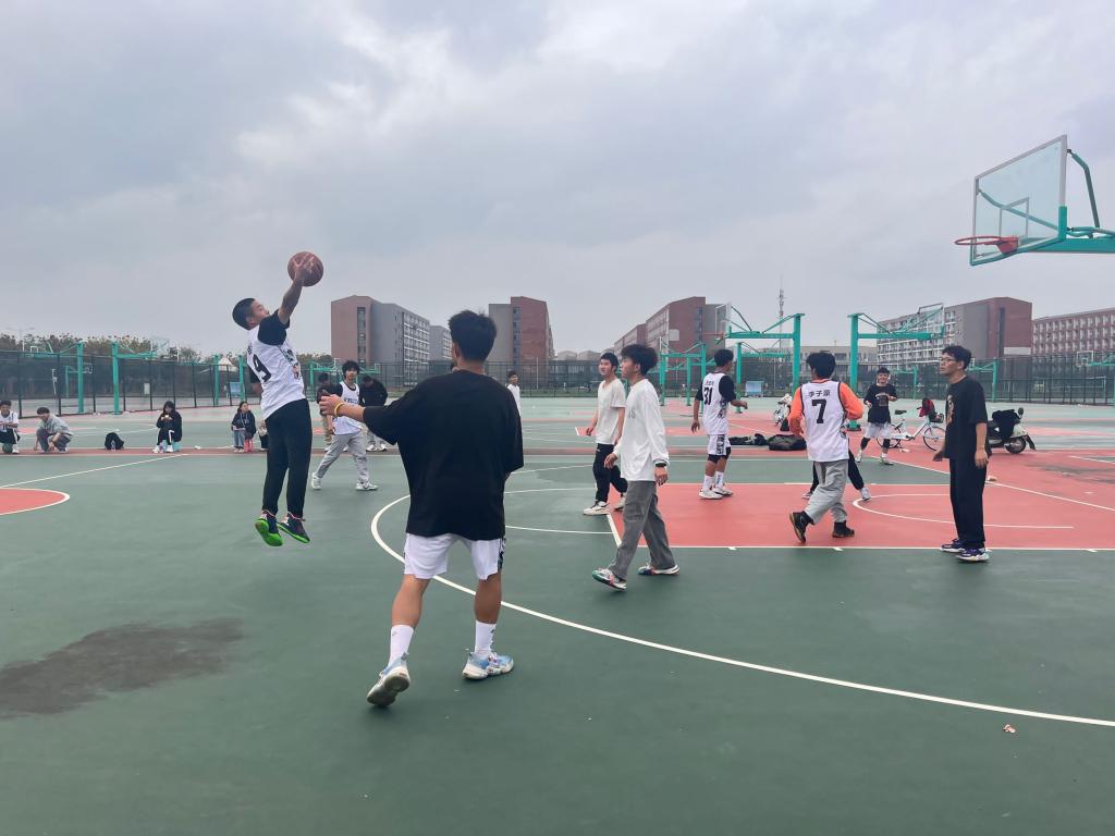 伴随开场清脆的哨音,双方队员奋力拼搏,他们身手矫健,传球、运球、上篮、扣球动作运用自如,比赛战况扣人心弦,一次次精彩绝伦的进球,一次次热烈的欢呼加油,把比赛推向了高潮。微凉的秋风抵挡不了同学们的热情,他们在赛场上挥洒汗水,宛如燃烧不尽的青春火焰。随着裁判员一声长哨响起,比赛圆满结束。