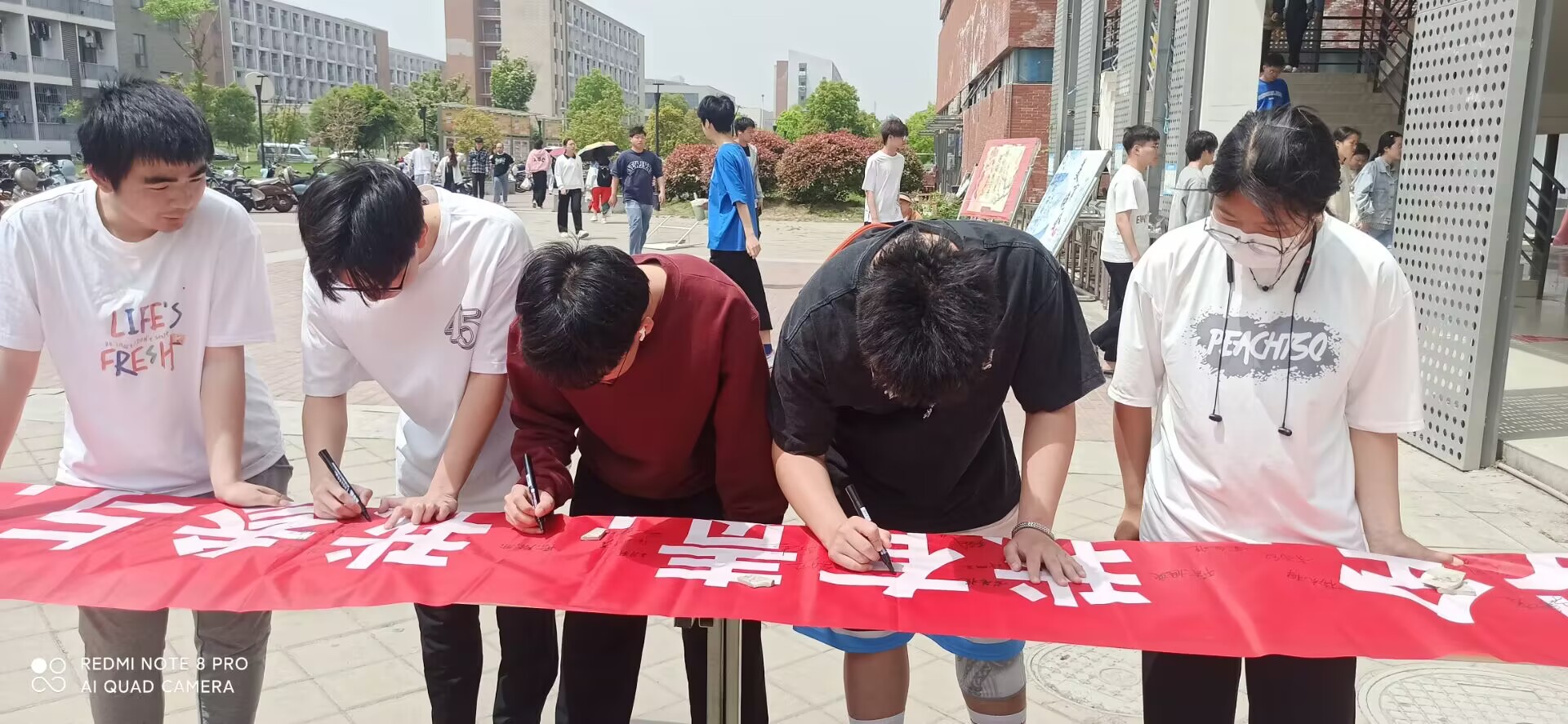 同学在横幅上签名(摄影:李雨情)
