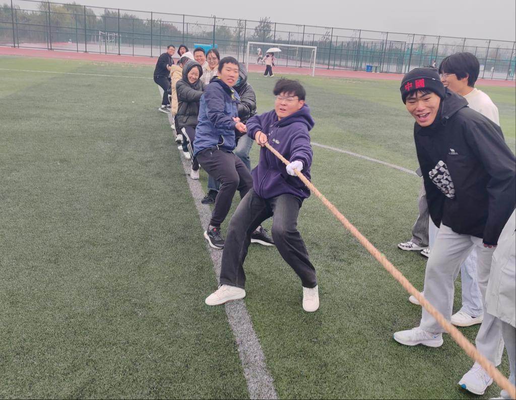 趣味运动会设置齐心协力、双向奔赴、滴水不漏、齐头并进和力拔山河等五个项目。同学们在各项活动中,齐心协力,步调一致。活动的方式极具脑洞大开,集思广益,各类奇思妙想,创新玩法,让活动变得更有趣。力拔山河的项目体现了团队的智慧与力量,各队伍精心讨论战术,场上队员扎稳马步,哨声一响,共同发力,场下观众此起彼伏的呐喊声和加油声响彻操场。最后按照活动积分制,高分子23级3班拔得头筹。