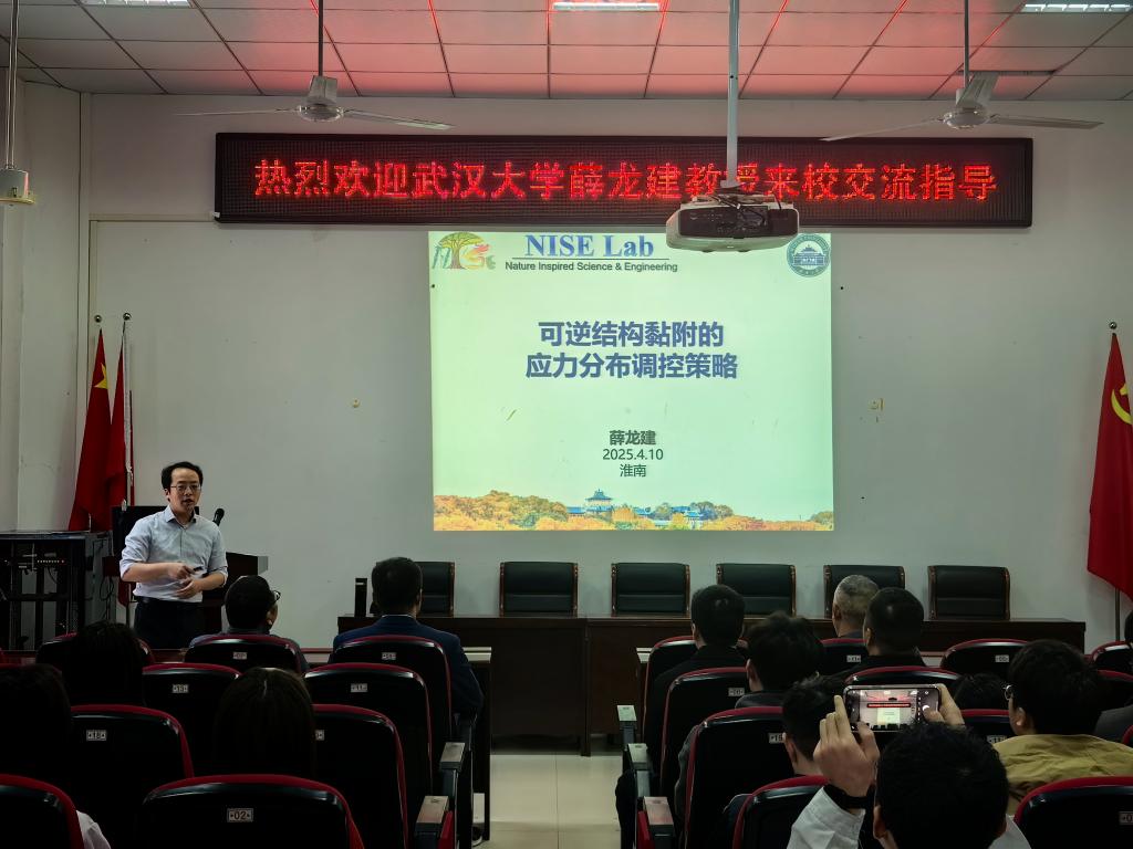 4月10日上午,应校科研部和材料科学与工程学院邀请,武汉大学薛龙建教授来校交流讲学,为师生作题为《可逆结构黏附的应力分布调控策略》的学术报告。报告会由材料科学与工程学院院长闵凡飞主持,来自材料学院的100余名师生参加了本次报告会。