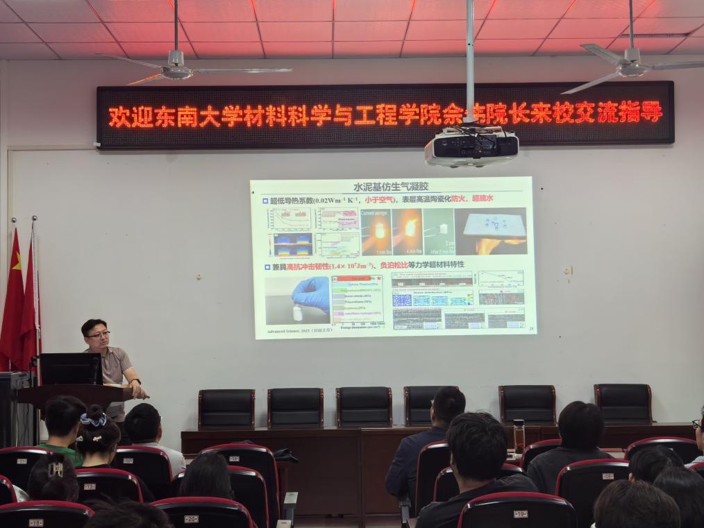 5月11日下午,应校科研部与材料科学与工程学院邀请,东南大学佘伟教授莅临我校交流讲学,在崇义楼B118报告厅为师生作题为《水泥基超材料:解构-重构-超构》的学术报告。报告会由学院副院长(主持工作)王庆平主持,来自材料学院的100余名师生参加了本次报告会。