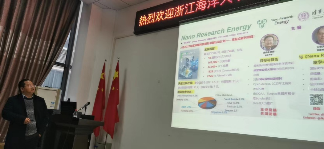 4月3日,应学校科研部和材料科学与工程学院邀请,浙江海洋大学周英棠教授来校交流。周英棠教授在材料学院B118报告厅作了题为《相结材料在能源与健康领域的研究探讨》的学术报告。报告会由材料学院院长闵凡飞教授主持,材料学科教师、研究生和本科生200余人参加了报告会。