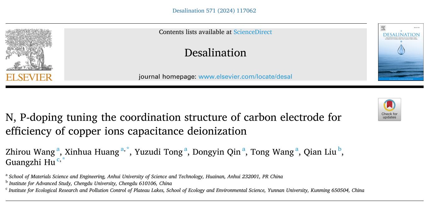 近日,我校材料科学与工程学院“聚合物基纳米组装体结构创制及应用”团队黄新华副教授在电容去离子研究领域取得进展,研究成果相继在Desalination (IF =9.9)和Chemical Engineering Journal (IF =15.1)国际TOP期刊连续报道。