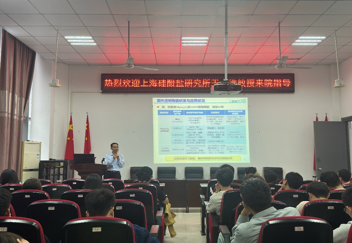 10月18日,上海硅酸盐研究所首席领军研究员,中国空间科学学会领事;中国硅酸盐学会特种陶瓷分会副理事长,硅酸盐通报副主编王士维教授莅临我校,并作了题为《透明陶瓷制备技术与应用》的学术报告。报告会由程国君副院长主持,来自材料科学与工程学院200余名师生积极参与本次报告会。