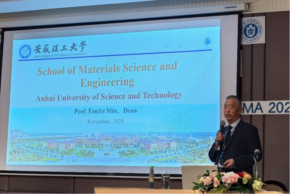 会议开幕式阶段,大城皇家大学校长Chusit Pradapet教授、先皇理工大学材料创新技术学院院长Wipoo Sriseubsai教授和韩瑞大学Won-Chun Oh教授先后致辞,闵凡飞教授从办学历史、办学特色、师资队伍、科学研究、人才培养等方面对安徽理工大学和材料科学与工程学院进行宣介,Won-Chun Oh教授宣布我校获得第20届多功能材料与应用国际会议主办权。