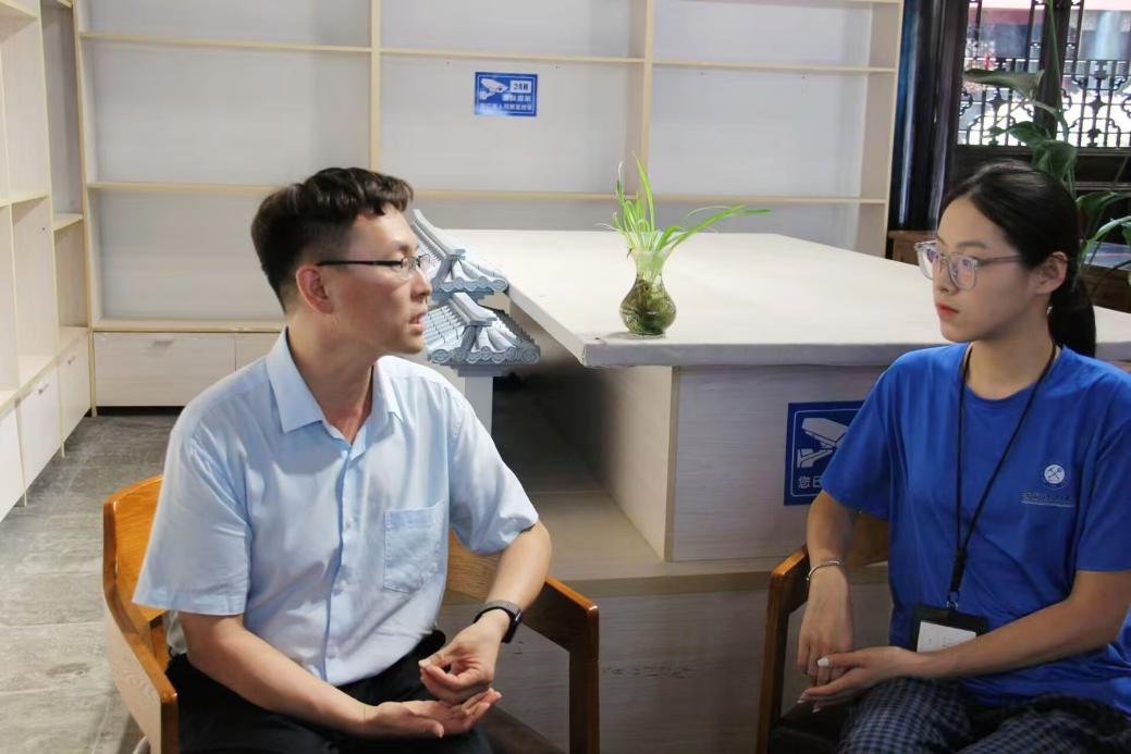 队员与李鸿章故居讲解员进行访谈(摄影:宋飞扬)