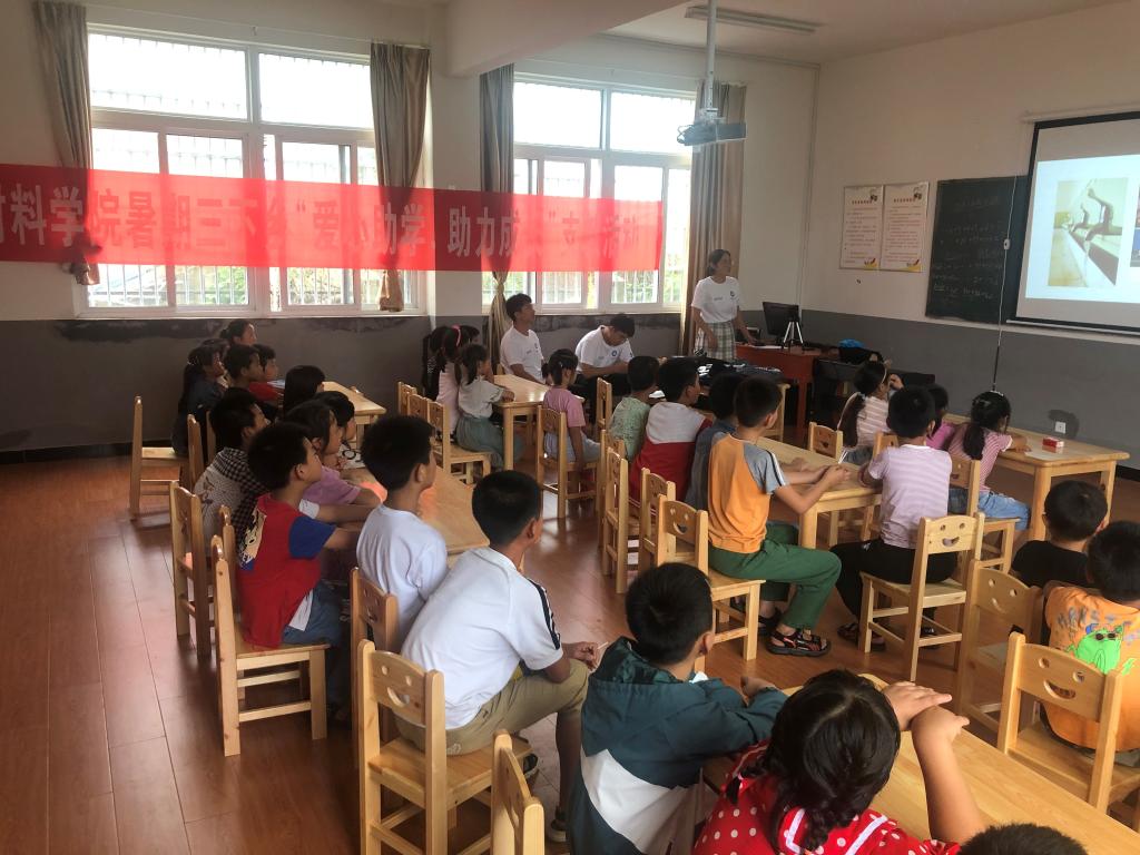 志愿者们结合习近平总书记重要讲话精神、党和国家精准扶贫政策等,向当地村民宣传普及乡村振兴知识,并通过“夏日送清凉”活动发放蚊香和风油精等生活必需品;结合专业实际和少儿需求,志愿者们又为当地小学生带来“彩虹小课堂”,以生态文明和安全教育为切入点,开展教育关爱活动,同时通过课堂互动为孩子们赠送书籍、体育用品和明信片等物资。