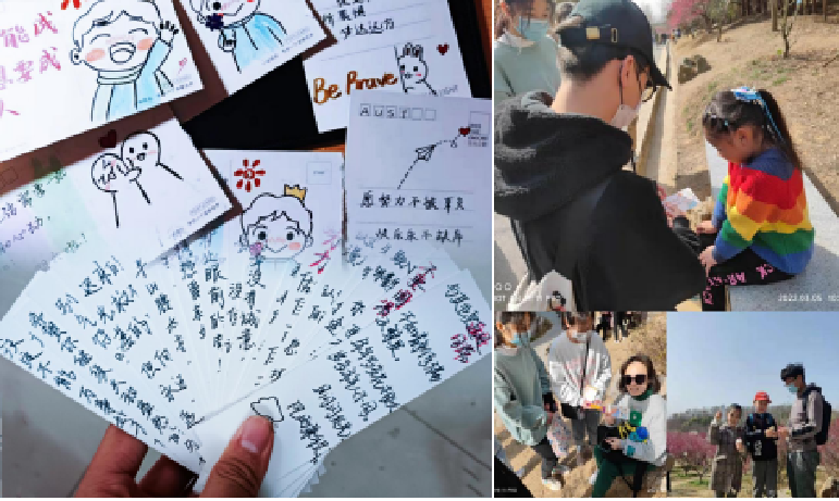 资源循环科学与工程2021-1班团支部的同学们以2022年“感动中国”年度人物为大家讲解了雷锋精神在生活中的典型事例。志愿者们拿出提前准备好的糖果和写满爱心鼓励话语的卡片,通过文字与言语间的交流,形成爱的传递。