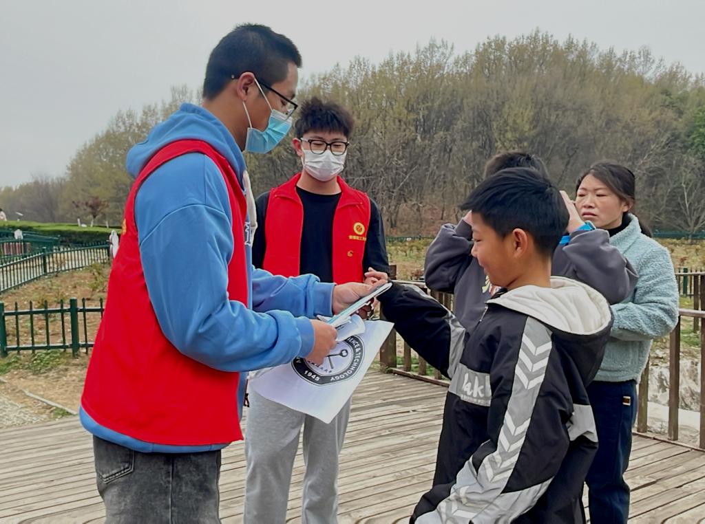 志愿者向游人宣传生态环境保护