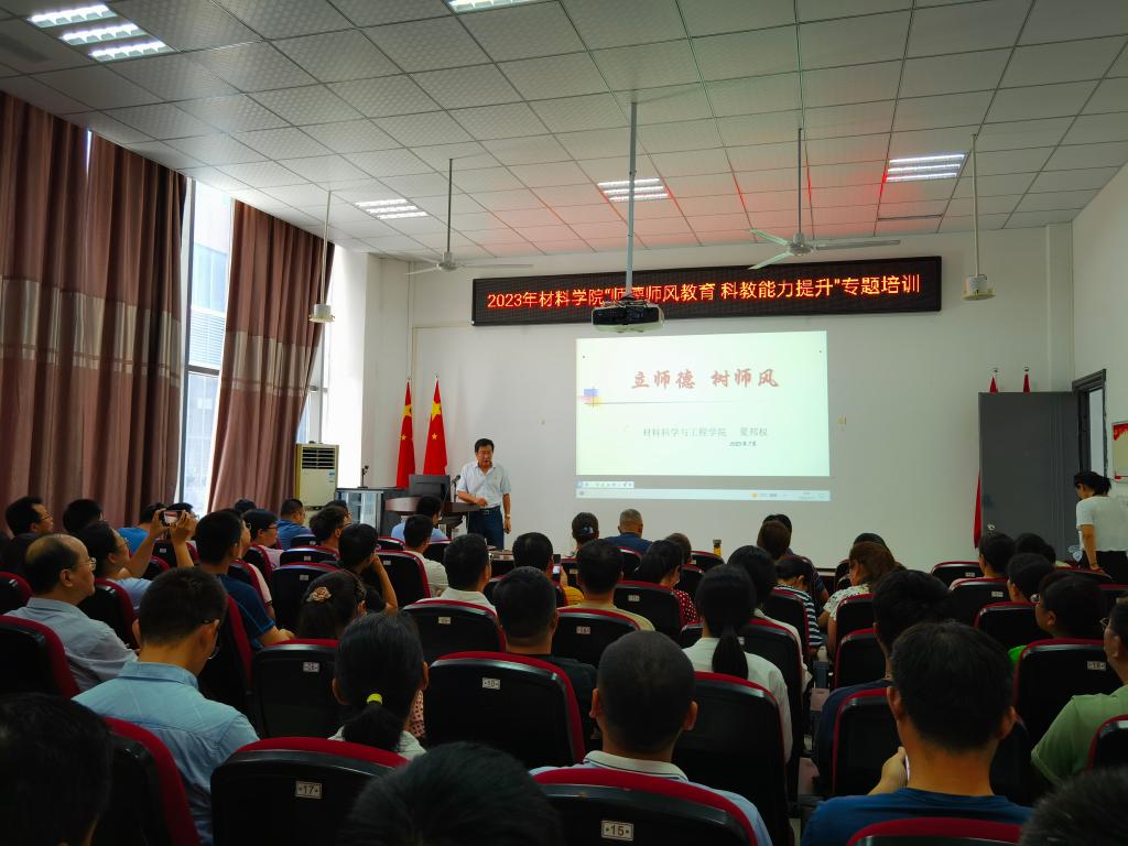 为进一步加强师德师风建设,着力提高教师教学科研能力和育人水平,助力学校“双一流”创建,材料学院于7月11-12日开展了2023年度教师“师德师风教育、科教能力提升”培训。
