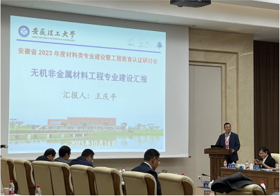 10月13日至15日,由安徽省材料类专业合作委员会主办、安徽大学材料科学与工程学院和安徽工业大学材料科学与工程学院联合承办的首届“安徽省2023年度材料类专业建设暨工程教育认证研讨会”于安徽合肥顺利举办。本次研讨会秉承“协同·创新·发展”宗旨,以“新时代材料学科的人才培养创新和实践”为主题,邀请省内外材料类专家围绕本次研讨会主题作经验交流和主旨发言。材料学院副院长王庆平、程国君和多位专业教师参加了研讨会,王庆平受邀以“无机非金属材料工程专业建设汇报”为题作大会主旨汇报,受到了与会人员的高度关注。