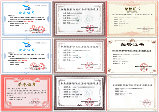 团队累计指导研究生获安徽理工大学研究生创新基金5项,指导本科生获大学生创新训练计划项目3项;指导本科生及研究生学科竞赛获“互联网+”安徽省高教主赛道银奖1项、铜奖1项、校级优秀指导教师2项,获全国高等学校矿物加工工程专业学生实践作品大赛国家一等奖1项、二等奖7项、三等奖5项。部分获奖证书如下: